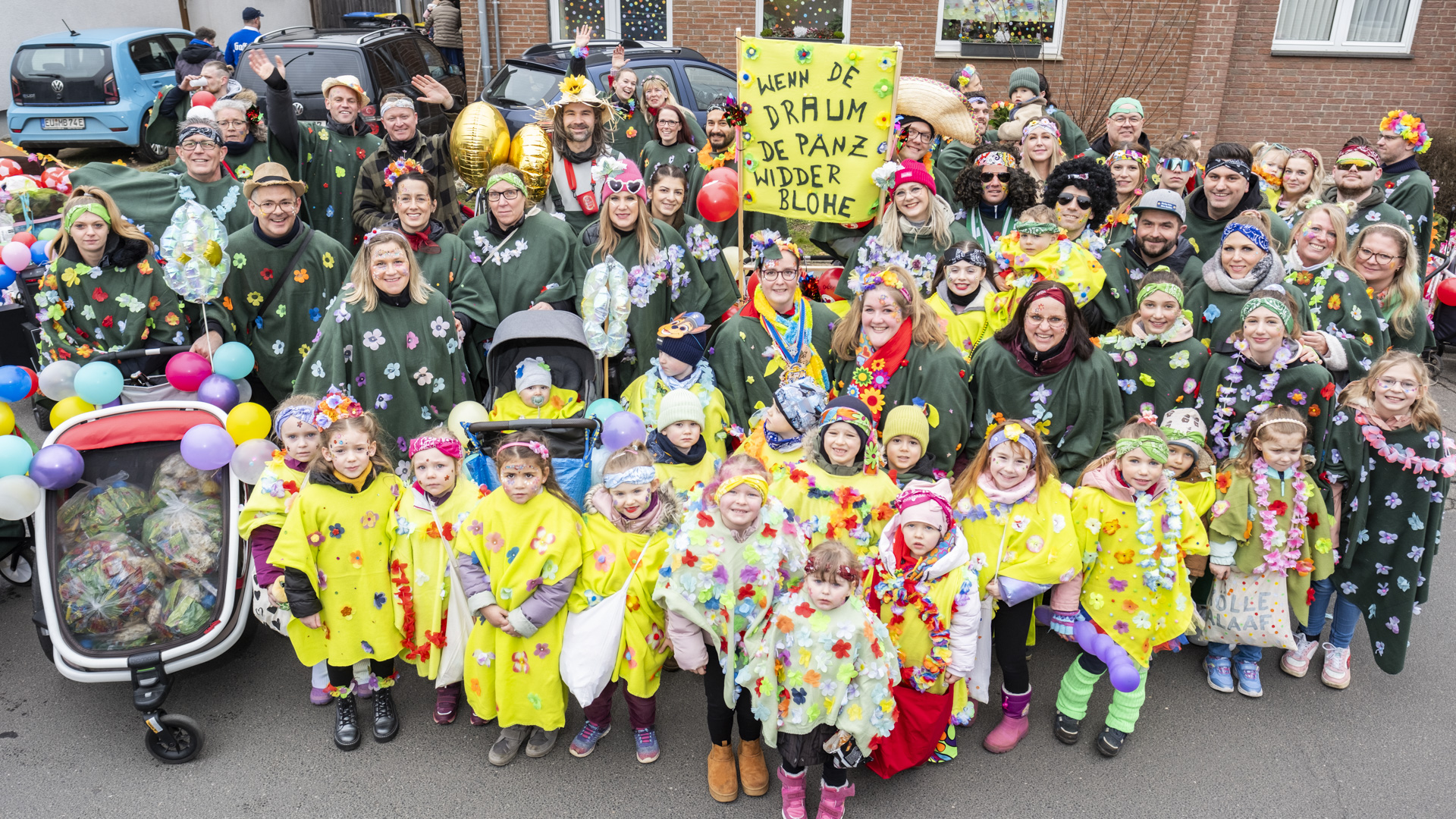 Weilerswist | Weilerswister DRK-Kitas gingen als bunt kostümierte Blumenschar mit rund 70 Kindern, Eltern und Erzieherinnen mit ihm Karnevalszug