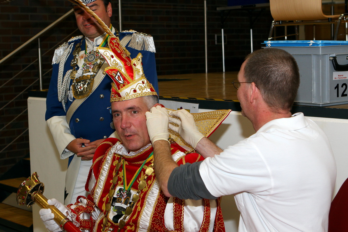 Auch Prinz Gerd I. (Wallraff) selbst war natürlich beim kollektiven Aderlass dabei. Kein Wunder eigentlich, denn die Zülpicher Tollität ist in Sachen Blutspende ein alter Hase: „Ich bin seit rund 15 Jahren mehrmals pro Jahr dabei - und auch als Prinz der Römerstadt lasse ich mir das nicht nehmen“, meinte das Karnevalsoberhaupt anlässlich seines Blutspende-Jubiläums. Für Prinz Gerd I. war es diesmal die 50. Blutspende.