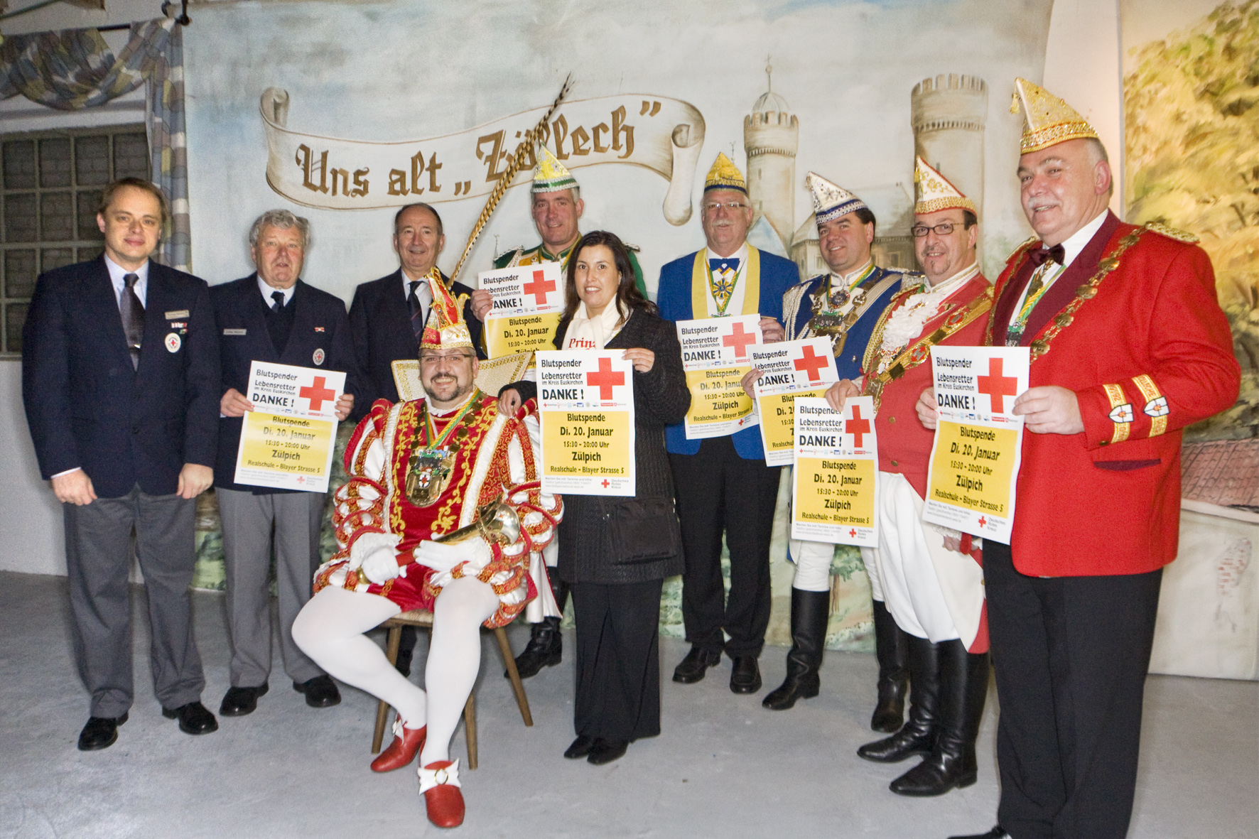Heinen: „Auch wenn gefeiert wird, gibt es Notoperationen, Unfälle, dringende Krebstherapien. Für all diese lebensbedrohlichen Fälle werden Blutkonserven benötigt.“ Mit der tatkräftigen Hilfe der Karnevalisten vertraut er darauf, möglichst viele Zülpicher für die Blutspende am 20. Januar zu mobilisieren. Denn immer wieder und gerade zu den Feiertagen und in der Urlaubszeit werden Blutkonserven knapp.