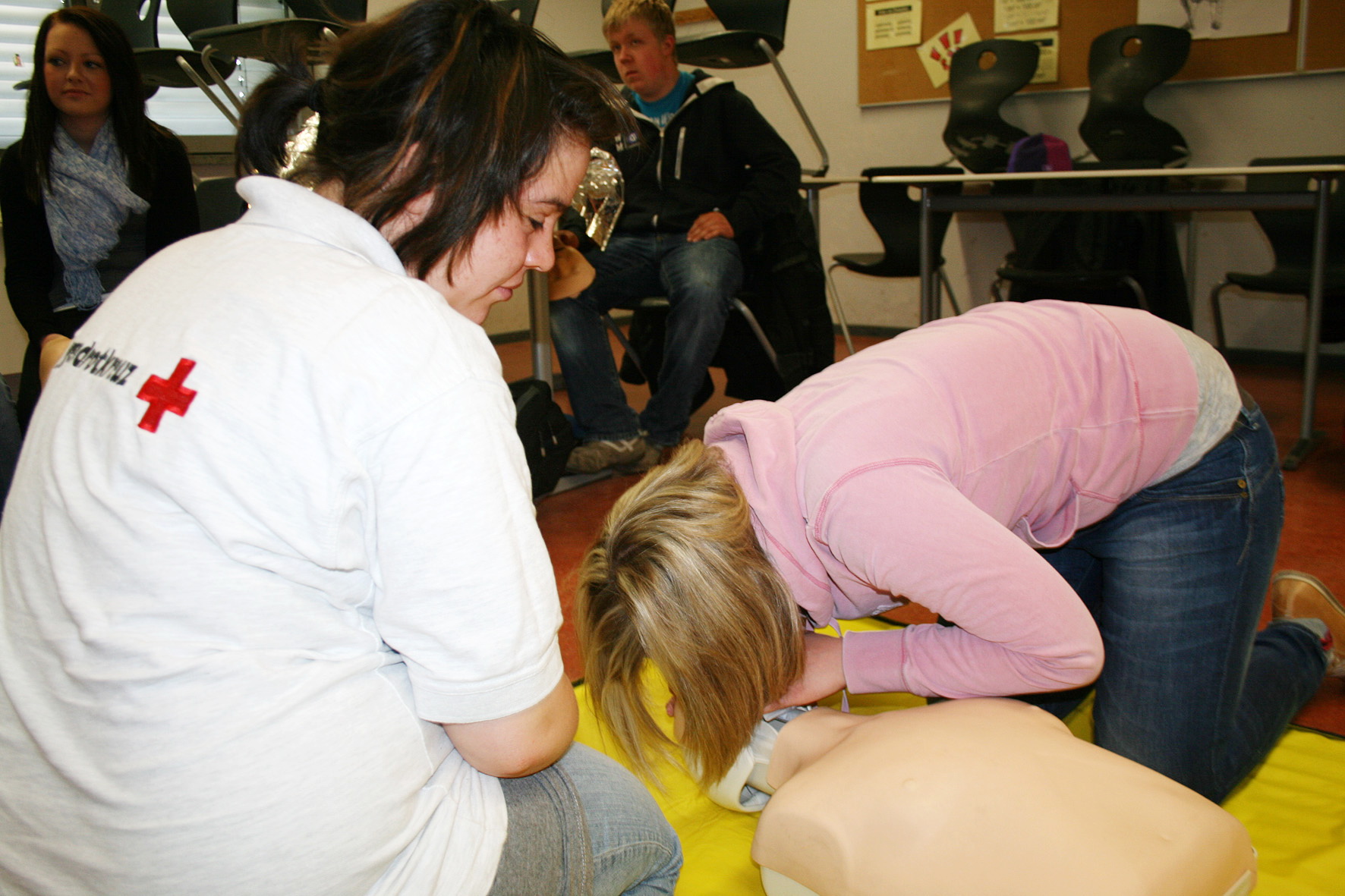 96 Schüler der Zülpicher Karl-von-Lutzenberger-Realschule absolvierten Erste-Hilfe-Lehrgang – Das Rote Kreuz im Kreis Euskirchen bietet für Schulen vergünstigte Lehrgänge – Schulleiter Johannes Schuba erkennt Wichtigkeit – Thomas Heinen vom Roten Kreuz lobt Engagement der Schule.