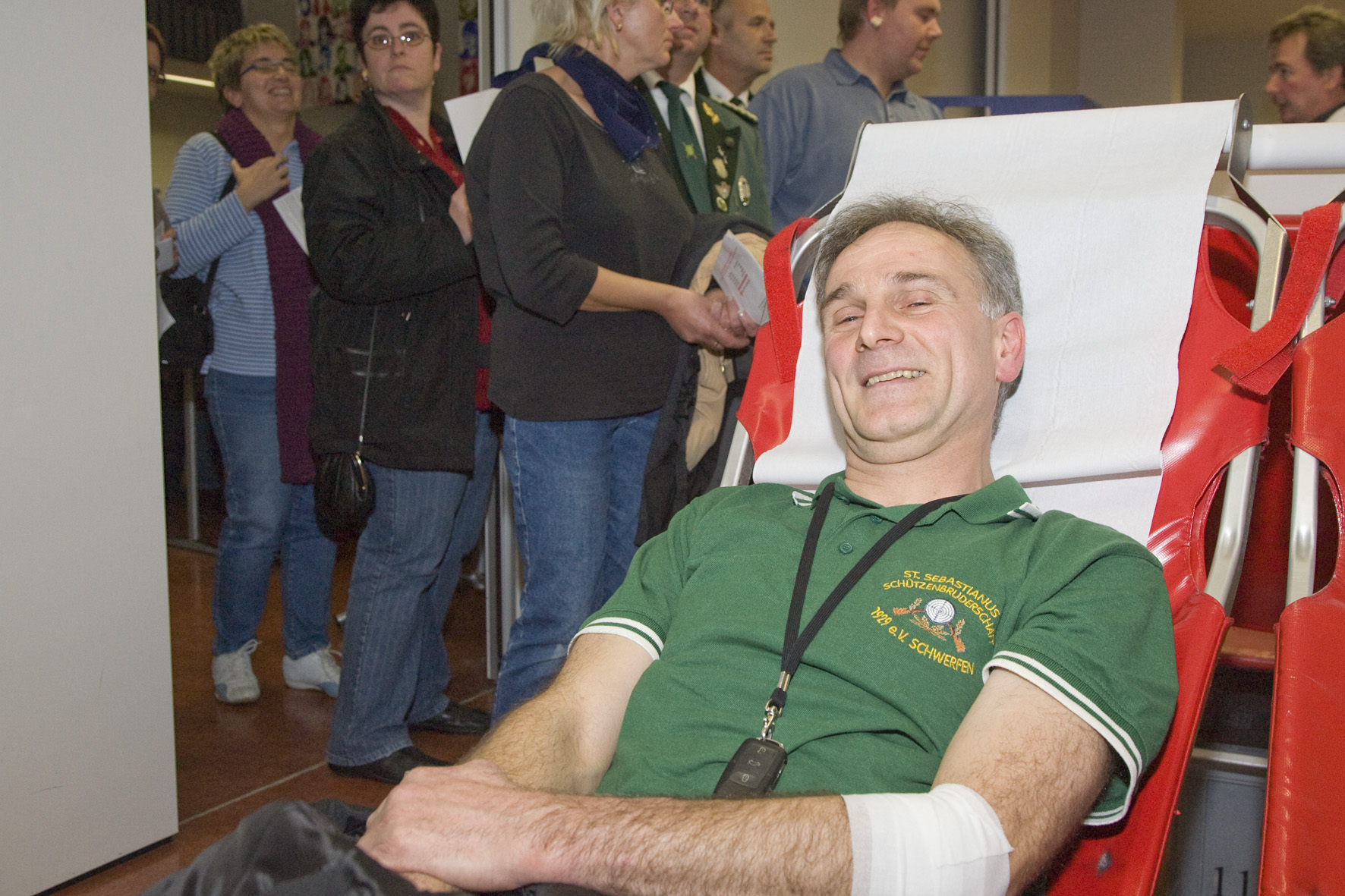 297 Spender kamen dem Aufruf der Zülpicher Schützenbruderschaften zur Blutspende nach, viele davon in der traditionellen grünen Schützentracht – Bezirksschützenkönig Bruno Kursch: „Man weiß nie, wann man selbst auf eine Blutkonserve angewiesen ist“