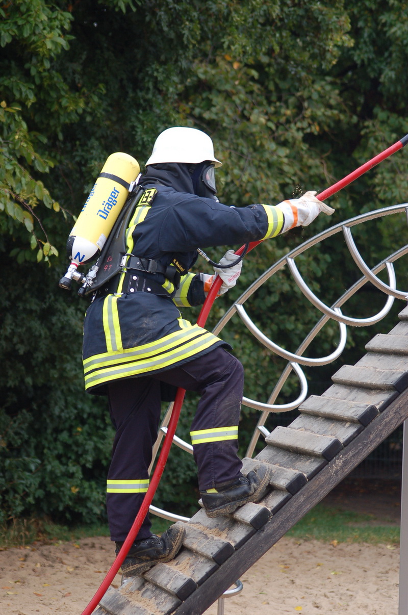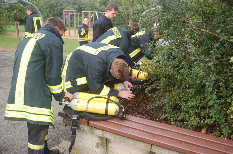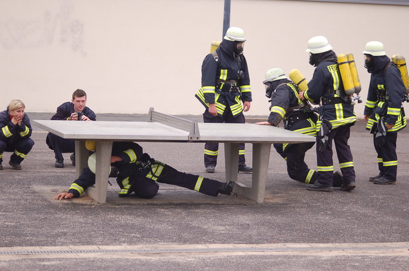 Denn die Pressluftflaschen sind schwer und das Atmen durch den Atemregler ist kraftaufwendiger. Dazu müssen die Teilnehmer einen kräftezehrenden Übungsparcour bewältigen. "Da kann es auch schon einmal vorkommen, dass der Kreislauf nicht mehr mitspielt und einem Kameraden schlecht wird", so Karina Geuenich.