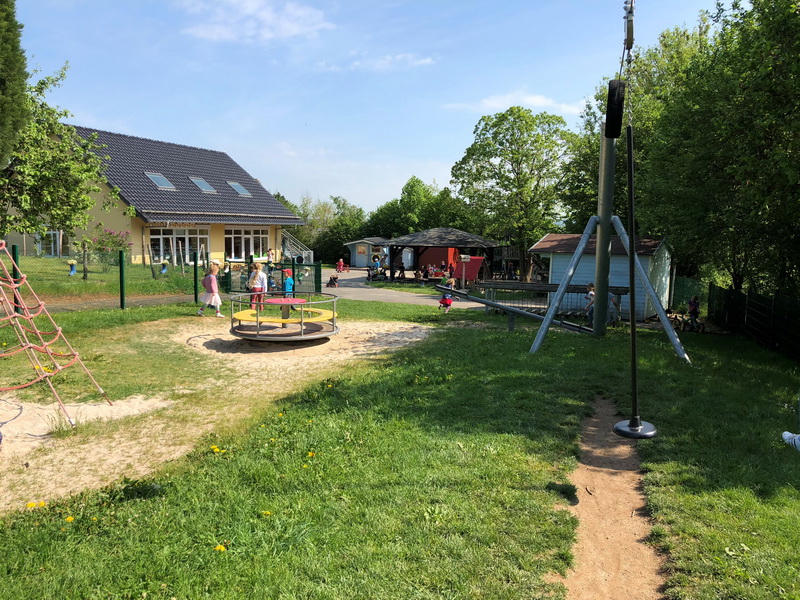 Unser sehr großes Außengelände verfügt über unterschiedliche Spielgeräte, Gartenbeete, ein Insektenhotel und naturnahe Spielräume. Neben den zwei Gruppenräumen bieten wir den Kindern einen großzügigen Bewegungsraum mit vielfältigem Sport-und Bewegungsmaterialien, welcher jederzeit für die Kinder zugänglich ist. In unserem Atelier haben die Kinder unterschiedliche Möglichkeiten sich jederzeit kreativ zu betätigen.