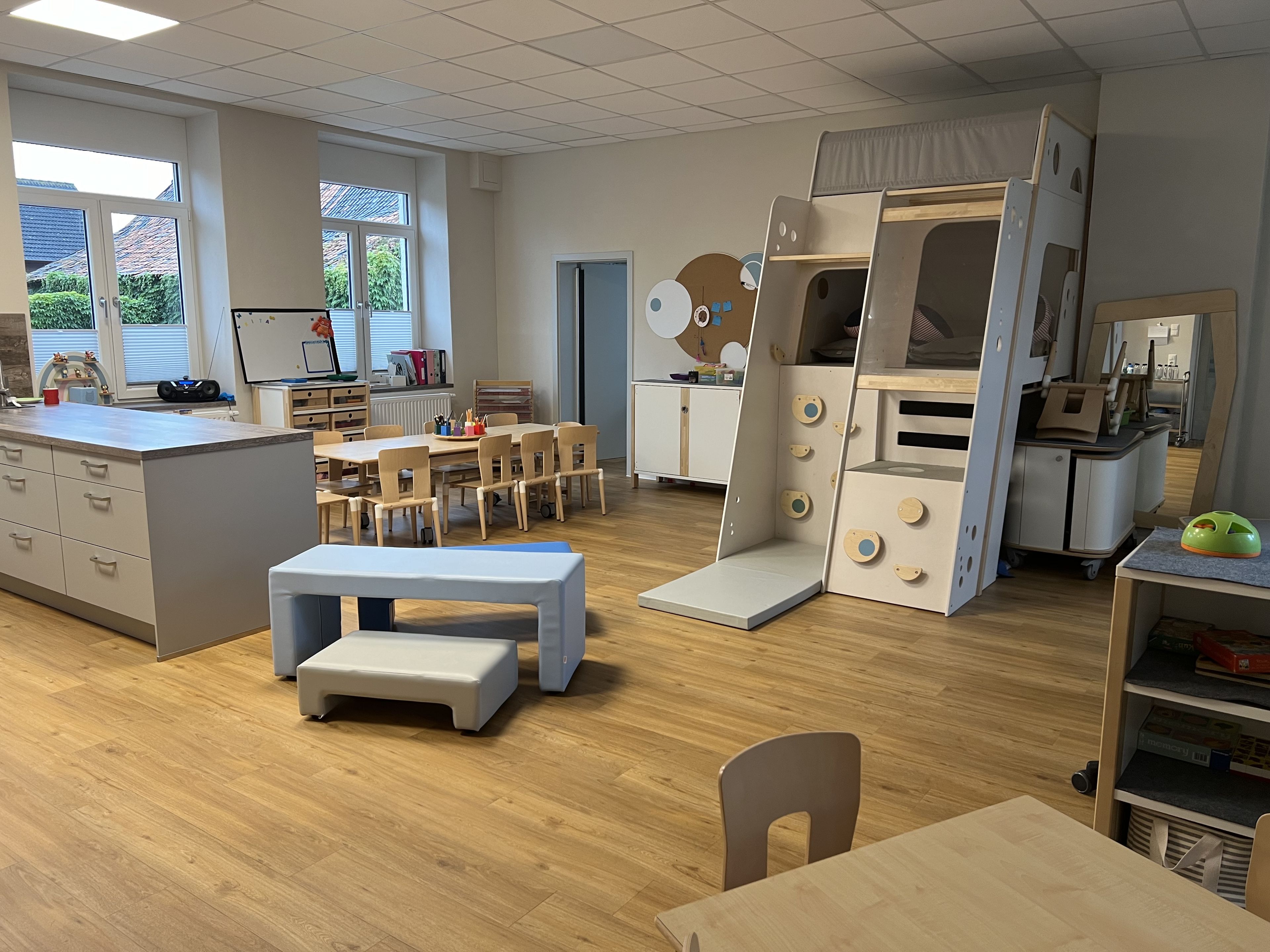 Unsere eingruppige Einrichtung bietet bis zu 22 Kindern von zwei Jahren bis zur Einschulung eine Betreuungszeit von 35 in der Woche.