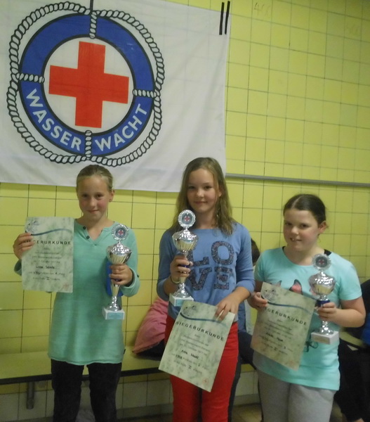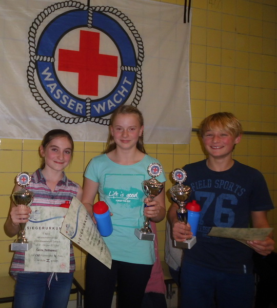 Im Erste-Hilfe / DRSA-Test belegte Juliane Reiners den ersten Platz der 12-16jährigen. Bei den 7-11jährigen beantworteten Viktoria Fahling (Kronenburg) und Anna Wawer die meisten Fragen richtig und erzielten punktgleich den ersten Platz.