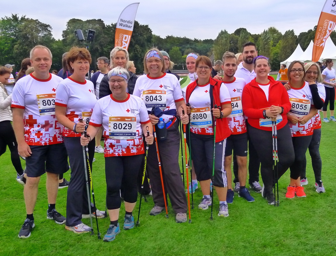 Die Rekordteilnehmerzahl von 23.000 Läufern aus 1000 Unternehmen war an den Start gegangen. Mittendrin die Rotkreuzler aus dem Kreis Euskirchen – und zwar nicht, wie man annehmen könnte, als Helfer am Streckenrand, sondern als Läufer. 84 Mitglieder des Kreisverbandes machten sich auf die 5,5 Kilometer lange Strecke. „Unsere Teilnehmer waren bunt gemischt und kamen aus Verwaltung, Kitas oder den Zentralen Unterbringungseinrichtungen für Flüchtlinge“, erzählte Iven weiter. Die Strecke wurde nicht nur rennend, sondern auch walkend gemeistert. „Alle hatten viel Spaß dabei, besonders die, die ihre Zeit gegenüber dem Vorjahr verbessert haben“, erzählte Heike Iven. Denn 2016 war das DRK zum ersten Mal dabei – damals noch mit 50 Teilnehmern.