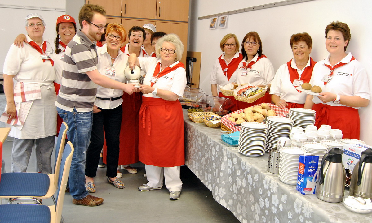 „Wer etwas Sinnvolles in seinem Leben tun möchte, hat hier die Gelegenheit und findet eine tolle Gemeinschaft dazu“, betont Petra Klostermann. Die Männer und Frauen, die bei den Blutspendeterminen im Einsatz sind, begrüßen und betreuen die Spender, erledigen die Anmeldung am Computer, bereiten den Imbiss zu, bauen das Büfett auf und haben nebenbei noch viel Spaß. Wer neu hinzukommt, wird angeleitet und geschult. „Durch die enge Zusammenarbeit entstehen oft neue Freundschaften, in vielen Gruppen treffen sich die Helfer auch privat, weil sie sich so gut verstehen“, so Petra Klostermann weiter. Und Edeltraud Engelen ergänzt: „Wir sind wie eine große Familie.“ Was in ihrem Fall durchaus wörtlich zu nehmen ist, denn Ehemann, Tochter und Enkelin haben sich nach und nach ebenfalls mit dem Helfer-Virus infizieren lassen und engagieren sich alle im DRK-Ortsverein Euskirchen.