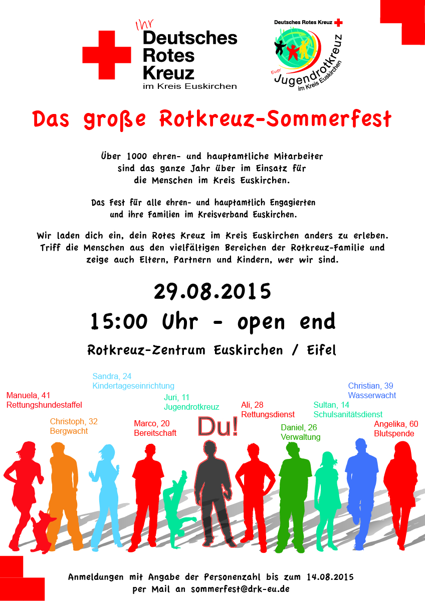 Am 29.08.2015 laden wir alle ehren- und hauptamtlichen Engagierten Rotkreuzler zum großen Rotkreuz-Sommerfest ein!