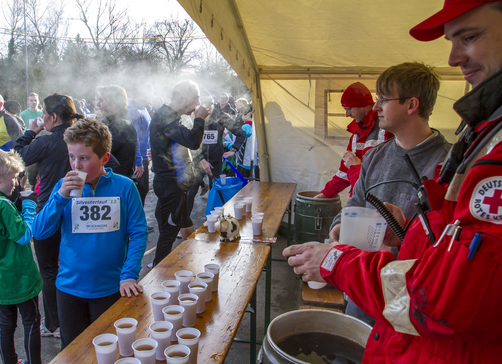 Am Dienstag standen rund 40 Ehrenamtler des Roten Kreuzes und des Technischen Hilfswerkes aus Euskirchen für die Sicherheit und Verpflegung der über 900 Teilnehmer am Silvesterlauf des LC Euskirchen bereit.