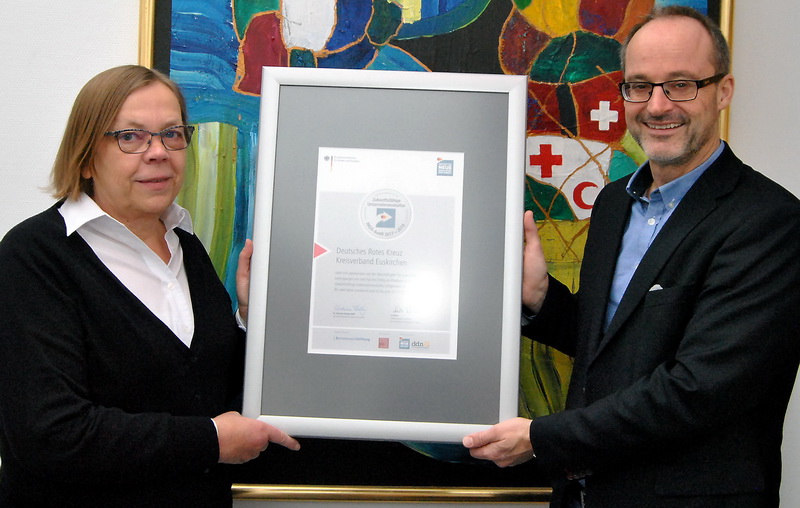DRK-Kreisgeschäftsführer Rolf Klöcker, der den Zertifizierungsprozess begleitete, erklärt, worum es dabei ging: „Als Kreisverband mit über 40 dezentralen Einrichtungen, darunter Kitas, Rettungswachen, Bildungswerke sowie Unterkünfte zur Flüchtlingsbetreuung, ist es nicht immer einfach, alle Interessen der Mitarbeiter zu bündeln. Dennoch ist es uns wichtig, auf die Bedürfnisse unserer Beschäftigten einzugehen.“