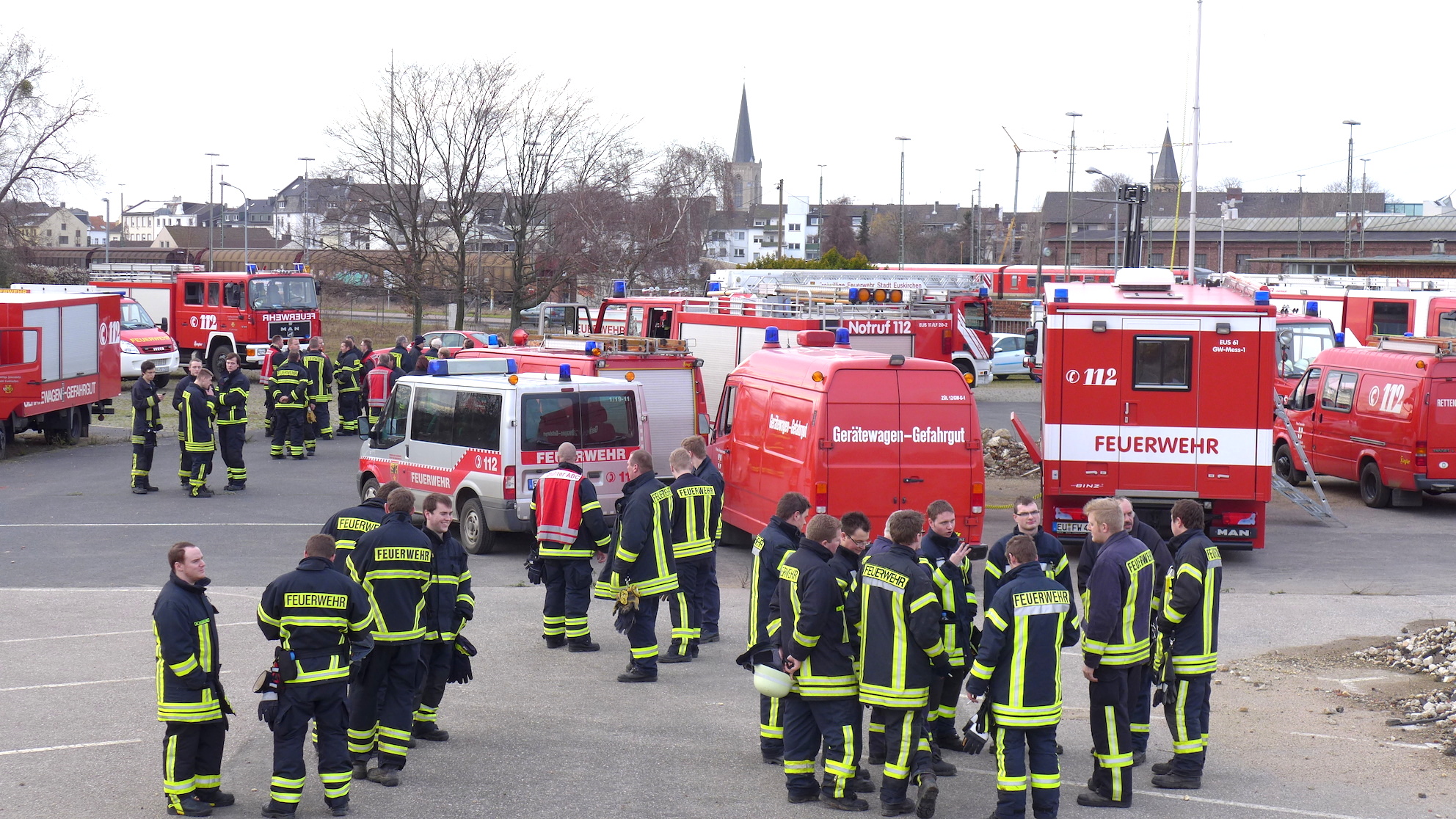Auf dem Gelände der ehemaligen Steinzeugwerke in Euskirchen explodierte bei Recycling-Maßnahmen eine Luftmine aus dem 2. Weltkrieg. Dabei wurde der Baggerführer getötet. Zwei Schwerverletzte und etliche Leichtverletzte wurden vom Rettungsdienst versorgt und in die Krankenhäuser gefahren.