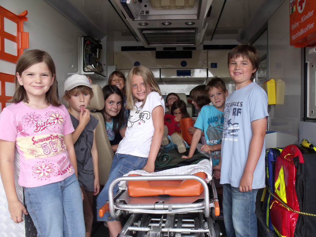 Im Rahmen des Kindersommerland- Programms des Roten Kreuzes besuchten die gespannten Kinder eine Feuerwehrwache. Dort gab es natürlich einiges zu besichtigen, zu bestaunen und auszuprobieren...