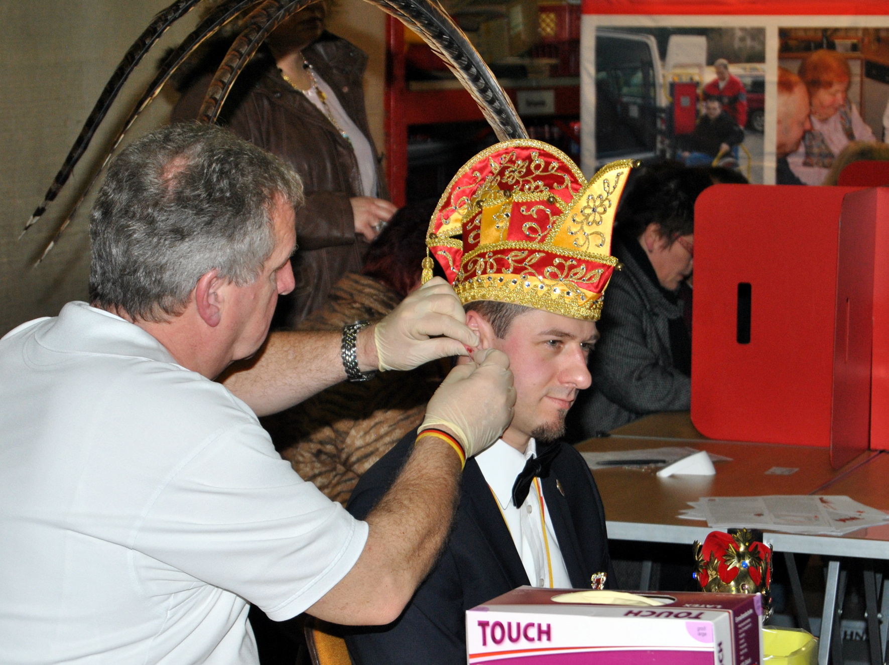 Der Mann, nach dem die Aktion benannt ist, hätte zwar gerne zum ersten Mal gespendet, durfte aber nicht: Bei den obligatorischen Voruntersuchungen stellte sich heraus, dass Euskirchens Tollität Prinz Joachim I. (Gerstenmeier) wegen eines Infektes nicht „angezapft“ werden durfte. „In zwei Monaten komme ich wieder“, versprach er Edeltraud Engelen, denn am 3. April, von 15 bis 20 Uhr, ist die nächste Blutspendeaktion im Euskirchener Rotkreuz-Zentrum hinter der Kreisverwaltung. Adjutant Robert Esser, das Nordstadt-Fürstenpaar Willy II. und Andrea II. (Löbbertz), Prinz Friedhelm I. (Melder), Tollität der KG Rözeme Pannejecke sowie zahlreiche weitere Karnevalisten durften dagegen auf den Spenderliegen Platz nehmen und den Ärmel aufkrempeln. Auch etliche Mitarbeiter der Kreisverwaltung waren dem Aufruf gefolgt und kamen nach Dienstschluss in die leergeräumte und gut geheizte Fahrzeughalle, wo anstelle der Einsatzfahrzeuge die Liegen aufgereiht waren.