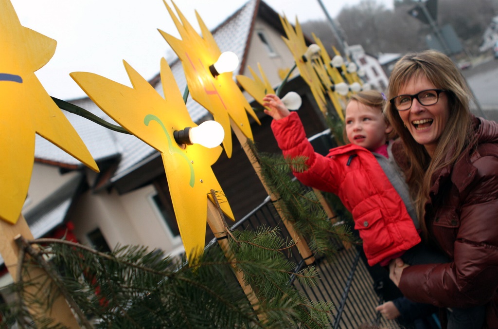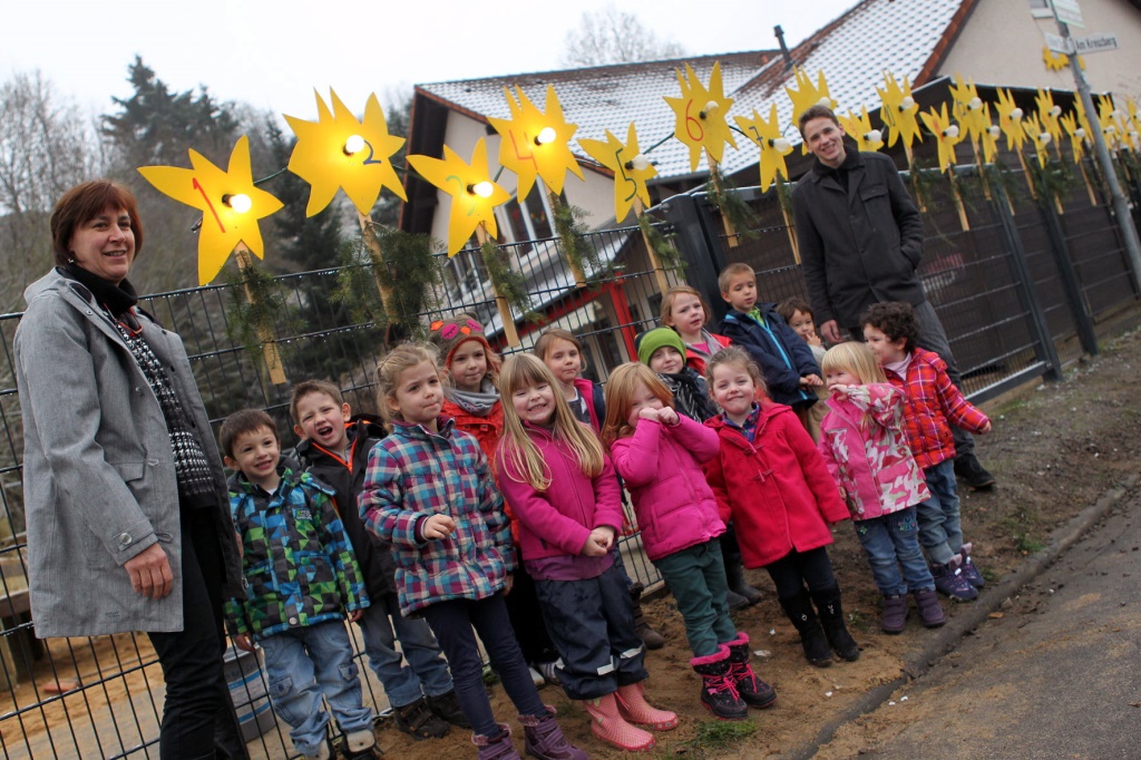 Gemünder Rotkreuz-Kindergarten am Kreuzberg hat Adventskalender aus Glühbirnen installiert - Jeden Tag wird eine neue Birne eingedreht - Helles Leuchten erfreut die Kinder