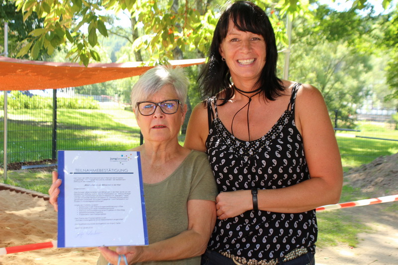 Bevor die Kinder jedoch mit ihren Scheren loslegen dürfen, werden Präsente überreicht: Anja Erharter, DRK-Kollegin und Leiterin der Kita in Blankenheim-Mülheim, hatte für die Gemünder das ersehnte Zertifikat im Gepäck. Mitarbeiter der Einrichtung hatten erfolgreich an einer Schulung zum Thema „Mitentscheiden und Mithandeln in der Kita“ teilgenommen. Das Konzept wurde von der Bertelsmann Stiftung und dem Institut für Partizipation und Bildung der Fachhochschule Kiel initiiert.