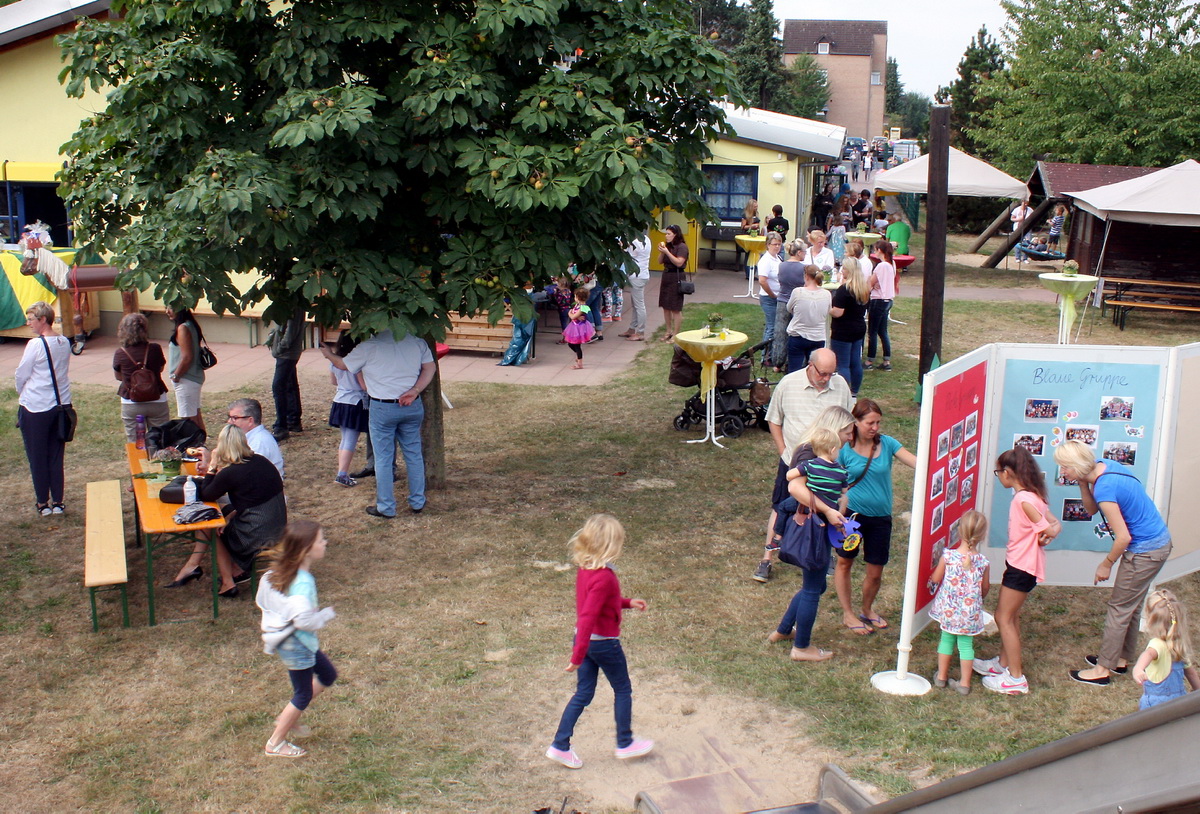 Zahlreiche Kinder, Eltern und Großeltern waren zum Jubiläum gekommen. Zum Bühnenprogramm gehörte Auftritte der Tanzgarden des TuS Vernich und von „Schiff Ahoi“, eine gemeinsame Tanzstunde mit der „Tanzschule Passion“ und die Show von Zauberer Mini-Max. Auf dem großen Außengelände der Kita konnte man indessen nicht nur die Spielgeräte benutzen, sondern auch Geburtstagstorten angeln, Jubiläums-Anstecker basteln oder am Glücksrad drehen.