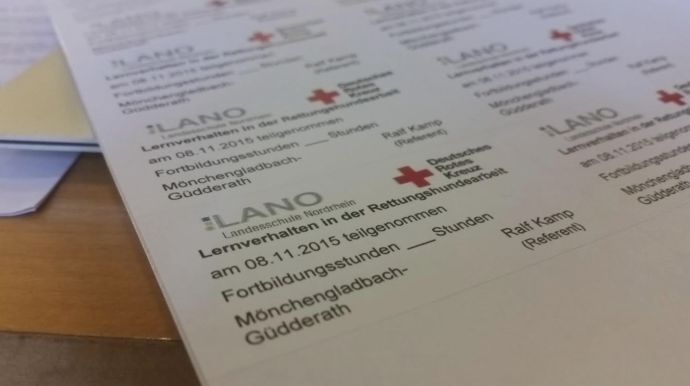 Bereits Anfang des Jahres schulte Kamp die Rettungshunde-Ausbilder der Rettungshundestaffeln im Landesverband Nordrhein. Dieses Mal unterrichtete er zum Thema „Lernverhalten in der Rettungshundearbeit“.