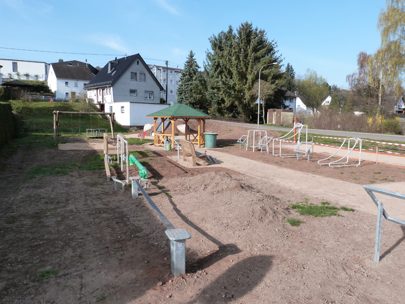 Weiterhin wurden Fitnessgeräte installiert, mit denen man seine Arm- und Beinmuskulatur kräftigen kann. Wie das genau funktioniert, dies wird demnächst auf Schildern erklärt, die noch angebracht werden müssen. Ein Pavillon bietet darüber hinaus bei schlechtem Wetter Schutz, und auf einer Boule-Bahn kann man schon bald wie in Südfrankreich eine ruhige Kugel schieben. Um die Boule-Bahn hat sich in erster Linie Wolfgang Gottschlich vom Kaller Eifelverein gekümmert.