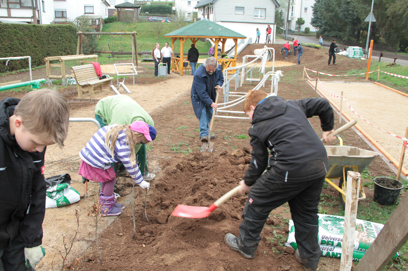 Kall - Der neue Mehrgenerationenplatz in Kall an der Auelstraße wurde am Wochenende bepflanzt. Am Samstag rückte die komplette Mannschaft des Jugendrotkreuzes Kall unter der Leitung von Herbert Lang an. Die 15 jungen Leute im Alter von sieben bis 16 Jahren hatten noch ein paar Freunde mitgebracht, um den Platz mit gut 300 Pflanzen, darunter mehrere Bäume und Buchenhecken, zu begrünen.