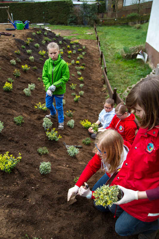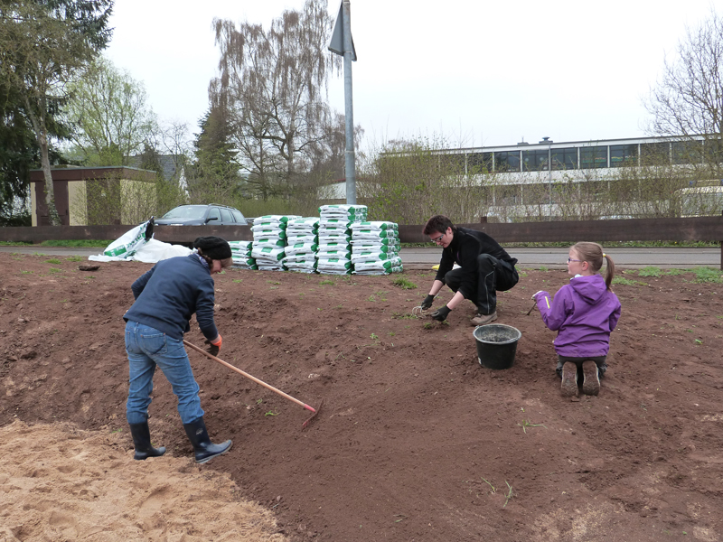 15 junge Leute pflanzten über 300 Grünpflanzen - Erster Beigeordneter Schmitz: "Spätestens Anfang Mai wird es eine Einweihungsfeier geben"