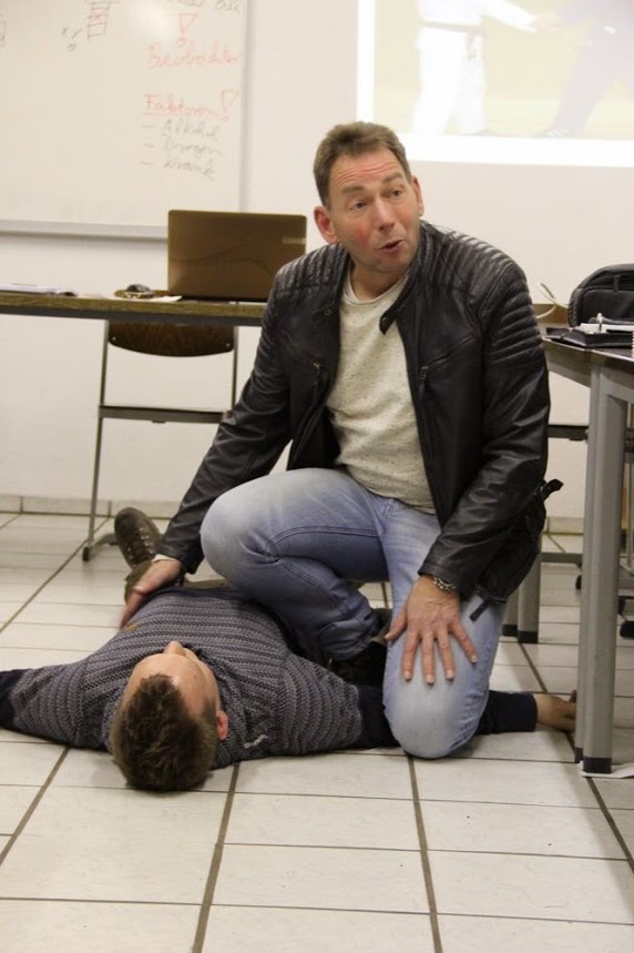 "Kommunikation ist die stärkste Waffe", erklärte Bundespolizei-Ausbilder Klein und zeigte durch einige anschauliche Beispiele, wie so etwas aussehen kann. Dazu ging er insbesondere auf Einsatzsituationen ein, die so bereits in der Realität stattgefunden haben.