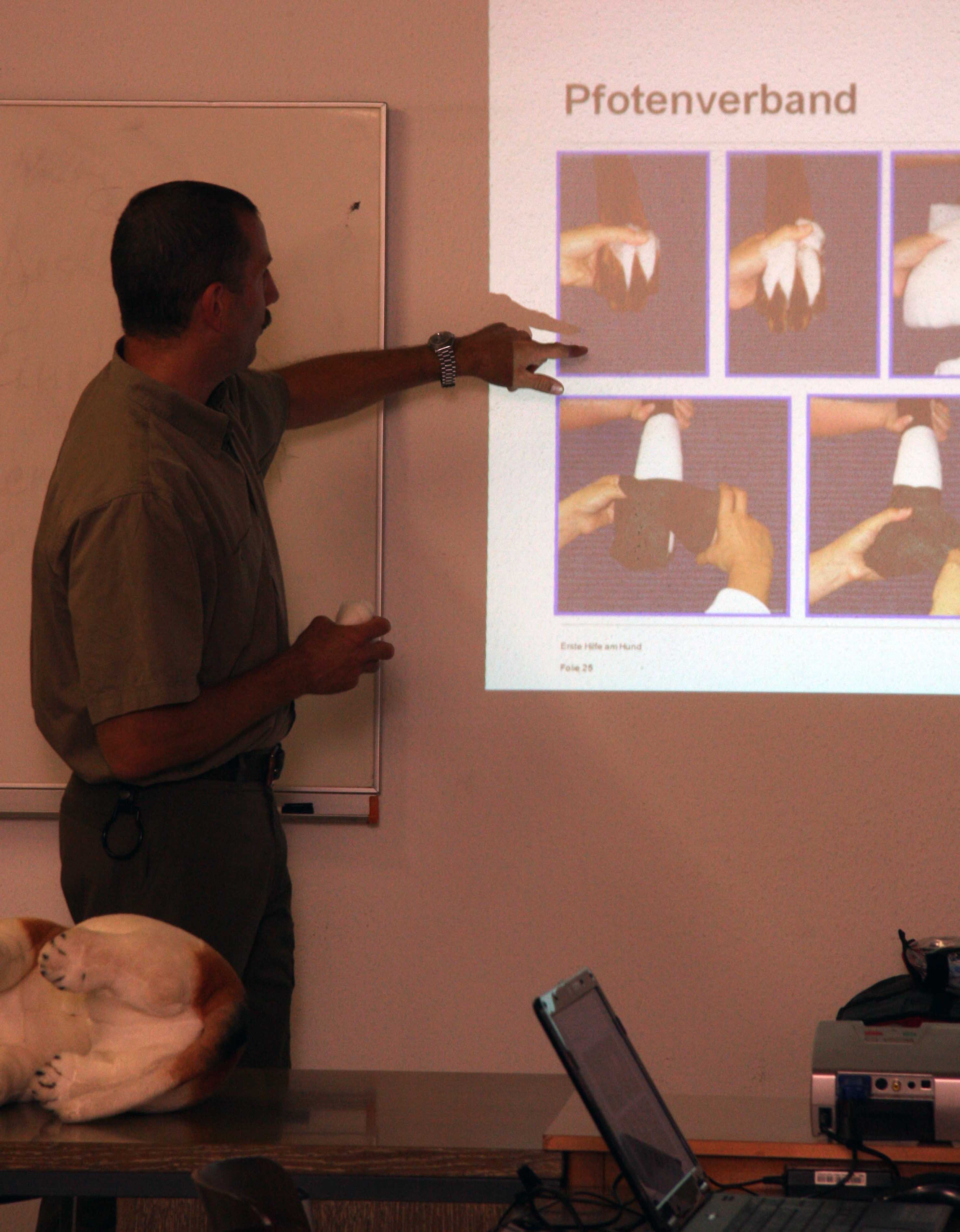 Die Kursteilnehmer lernten, wie sie Symptome erkennen und darauf reagieren. Sie erfuhren, wie sie das Verhalten der Hunde und deren Mimik richtig deuten können, und sie erhielten Ratschläge zum Eigenschutz sowie zum Transport der Tiere.