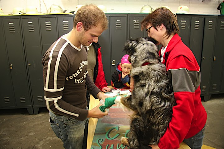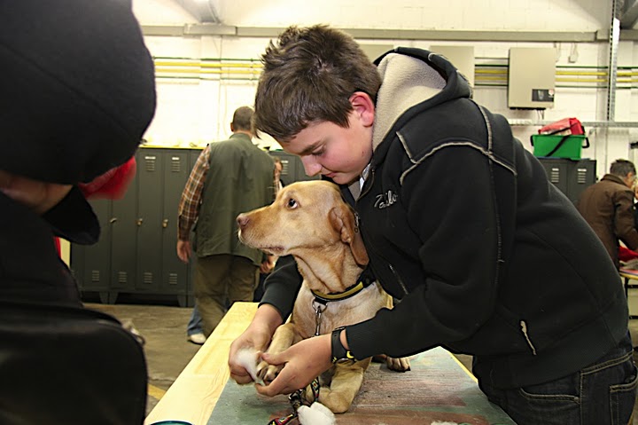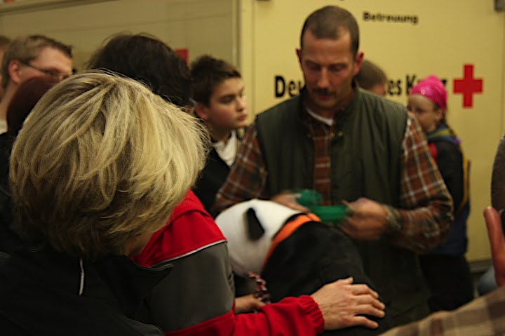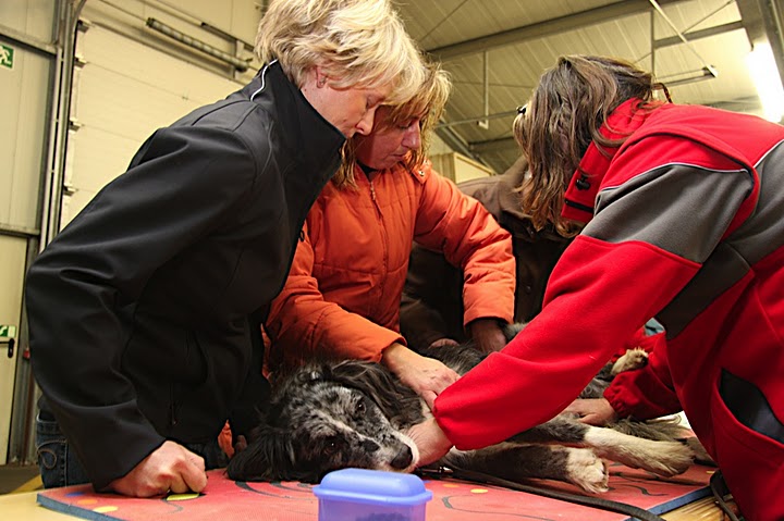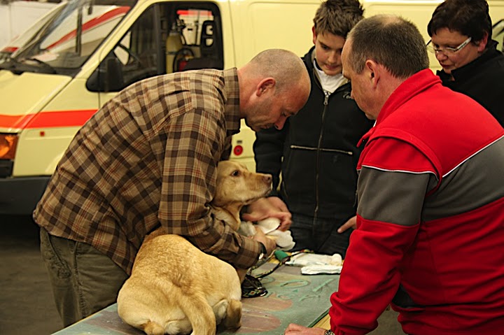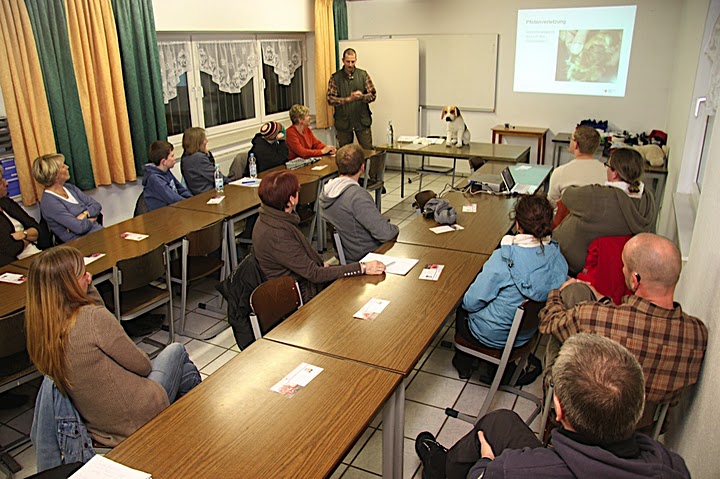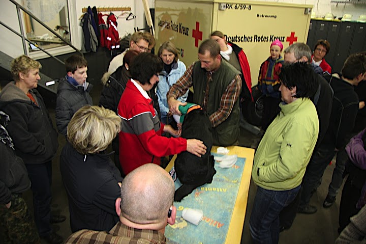 20 Teilnehmer lernten mit Tierarzt Dr. Bert Hülsmann die Erste Hilfe am Hund. Wie im "echten Leben" war Improvisation gefragt. Anstatt an Puppen übten die Teilnehmer an "echten" Vierbeinern.