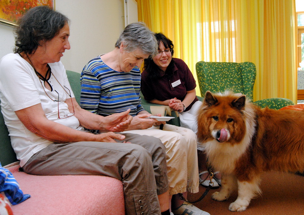 Allein der Anblick und das Streicheln des Hundes entlocke den demenzkranken Bewohnern des Resi-Stemmler-Hauses Reaktionen, die auszulösen dem Pflegepersonal verwehrt bleibt. „Wir hatten eine Bewohnerin, die sehr in sich zurückgezogen war“, berichtet Martina Schneider, verantwortlich für die soziale Betreuung der Bewohner. „Von Woche zu Woche konnten wir beobachten, wie sich die Dame durch den Kontakt zum Tier wieder öffnete und aus ihrer Isolation kam.“ Kein Wunder, dass der Vierbeiner mit dem großen Namen auch beim Personal der Pflegeeinrichtung ein gern gesehener Gast ist.