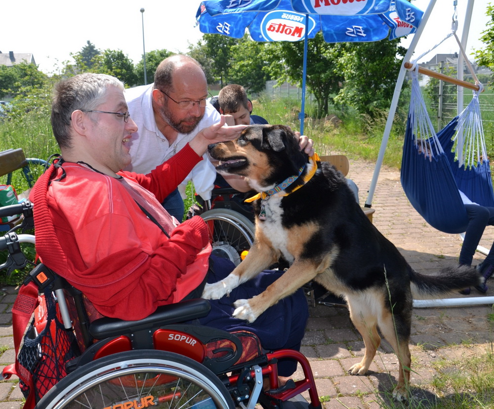 Ähnliche Erfahrungen macht Norbert Janster aus Mechernich mit seiner „Lena“. In den Nordeifelwerkstätten in Ülpenich sind Norbert Janster und Lena im Wochenrhythmus in einer von Linda Blesse geleiteten Fördergruppe für mehrfach behinderte Menschen zu Gast. „Lena erreicht unsere Gruppenmitglieder auf einer Ebene ohne Worte“, so Linda Blesse. „Sie schenkt auf eine gewisse Art und Weise unvoreingenommen Zuwendung und kann ihnen so aus einer inneren Isolation helfen.“ Natürlich sei der Besuchshund nicht zuletzt auch eine willkommene Ablenkung vom Arbeitsalltag. „Dieser Dienst ist für mich als Hundebesitzer eine ideale Möglichkeit, mich mit meinem Hund ehrenamtlich zu engagieren“, so Norbert Janster. „Gemeinsam erleben wir ganz direkt die Freude und Begeisterung der Menschen – eine Erfahrung, die mich immer wieder aufs Neue bewegt!“