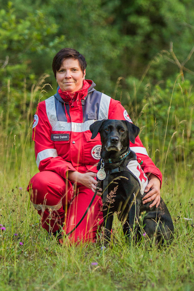 Nach der Vergabe der Urkunden an die Hundeführer und Dienstplaketten für die Hunde gab es noch eine ganz besondere Ehrung für die zwölfjährige Kaller Labrador-Hündin „Lena“ mit Hundeführerin Julia Tiede. Für ihre jahrelangen Verdienste und vielfachen Einsätze bei der Suche nach vermissten Personen gab es für „Lena“ die Ehrenplakette „Rettungshund im Ruhestand“. Dies ist eine Anerkennung für die Hunde, die aus Altersgründen nach ihrer Dienstzeit in den Ruhestand versetzt werden. „Lena“ war einer der wenigen Hunde, die mit zwei Hundeführern geprüft und einsatzfähig war. Damit hat sie praktisch nahezu alle Einsätze in den vergangenen Jahren mitgemacht. Sie bestand alle Prüfungen und war auch in den Hilfseinsätzen ein äußerst verlässlicher Suchhund.
