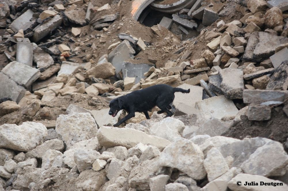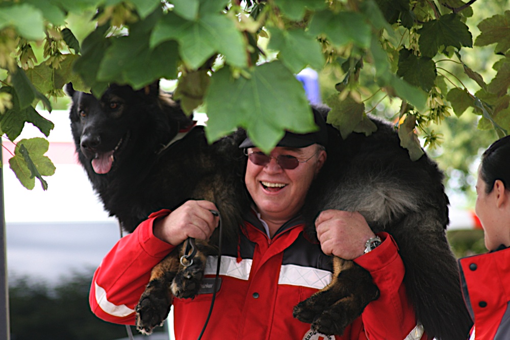 Herzlichen Glückwunsch an das neue Einsatzteam Martin mit seinem Mischlings-Rüden „Leo“ (Flächensuch-Team für die Suche nach Vermissten im Wald- und Wiesengelände) sowie Franz mit seiner Labrador-Hündin „Jette“ (zusätzliche Zertifizierung für die Suche nach Verschütteten). Außerdem konnte Birgit mit ihrer Border Collie-Hündin „Jessie“ die Einsatztauglichkeit für die „Trümmersuche“ bestehen.