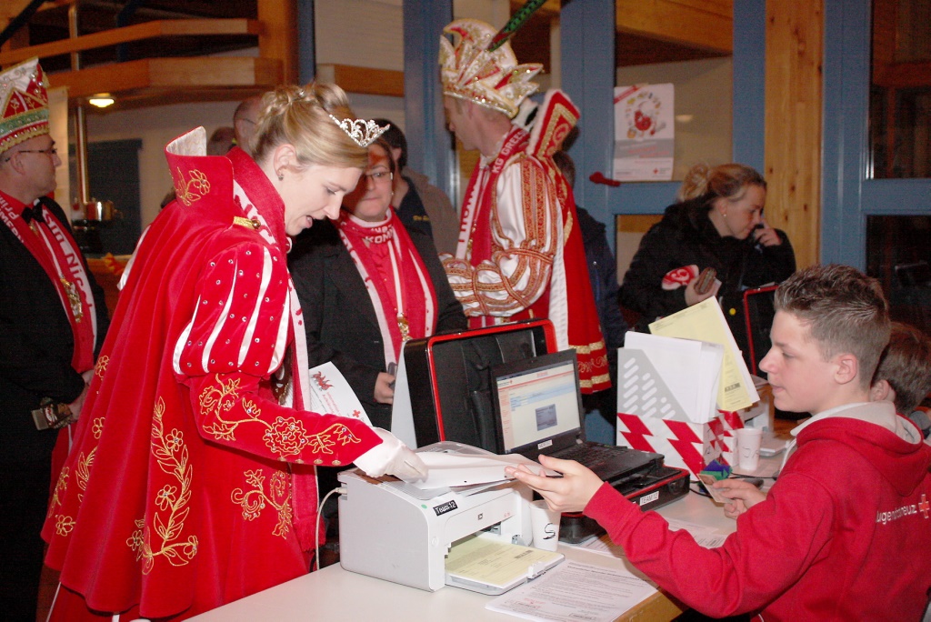 Tolles Ergebnis beim närrischen Aderlass: 135 Blutspender, davon 17 Erstspender – Kommerns Narrenherrscher Thomas I. und Nicole I. (Bank) mussten Prinzenblutspende abbrechen – Auch Flüchtlinge kamen, um Blut zu spenden