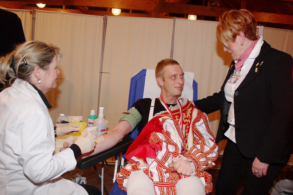 Mit hochgekrempelten Ärmeln nahm der Prinz nach Arztgesprächen und Gesundheitscheck schließlich auf der Liege Platz. Und nach einem Pieks lief schon der Lebenssaft in den vorgesehenen Blutbeutel. Nach wenigen Minuten musste der Aderlass allerdings wegen Kreislaufbeschwerden abgebrochen werden.