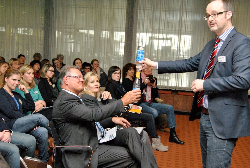 Die Frauen nahmen Klöcker die Bemerkung nicht übel und quittierten diese mit zustimmendem Gelächter. Zumal es sich dabei keinesfalls um ein männliches Vorurteil handele, wie Stiftungs-Mitarbeiterin Dr. Jutta Moschner betonte. „Im Primarbereich arbeiten mehr Frauen mit einer Hemmschwelle vor Chemie und Physik“, sagte die NRW-Länderreferentin. Mit der Fachtagung im Kreishaus wollten die Veranstalter dieser Scheu begegnen und zugleich eine Kooperation zwischen Kitas, Grundschulen und OGS anregen. Eingeladen wurden die Fach- und Lehrkräfte aus den 130 Kindertageseinrichtungen sowie den Grundschulen inklusive der Offenen Ganztagsgrundschulen im Kreis Euskirchen. Mit 75 Anmeldungen zeigte sich Rolf Klöcker sehr zufrieden: „Mit einer solchen Resonanz haben wir nicht gerechnet.“