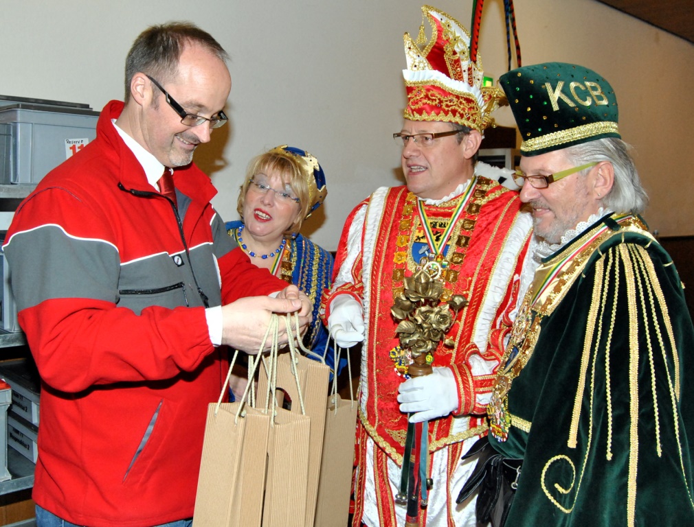 Der Tollitäten-Appell, zum kollektiven Aderlass für den guten Zweck im Offizierscasino der Bundeswehr zu erscheinen, blieb nicht ohne Wirkung: 214 Blutspender waren dem Aufruf gefolgt, darunter 17 Erstspender. „Das ist ein toller Erfolg, und wir bedanken uns beim Mechernicher Dreigestirn und seinem Gefolge ebenso wie beim Holzheimer Prinzenpaar“, sagte Rolf Klöcker, Geschäftsführer des Roten Kreuzes im Kreis Euskirchen und erster Vorsitzender des DRK-Ortsvereins Mechernich. Denn neben dem Mechernicher Dreigestirn, das in Begleitung von Prinzenführer Gerd Jannes und den Adjutanten Gaby Merlau und Volker Nüssmann angetreten war, hatten auch die Holzheimer Tollitäten Michael I. (Isop) und Melanie I. (Kreuser) die Aktion sowohl moralisch als auch praktisch unterstützt.
