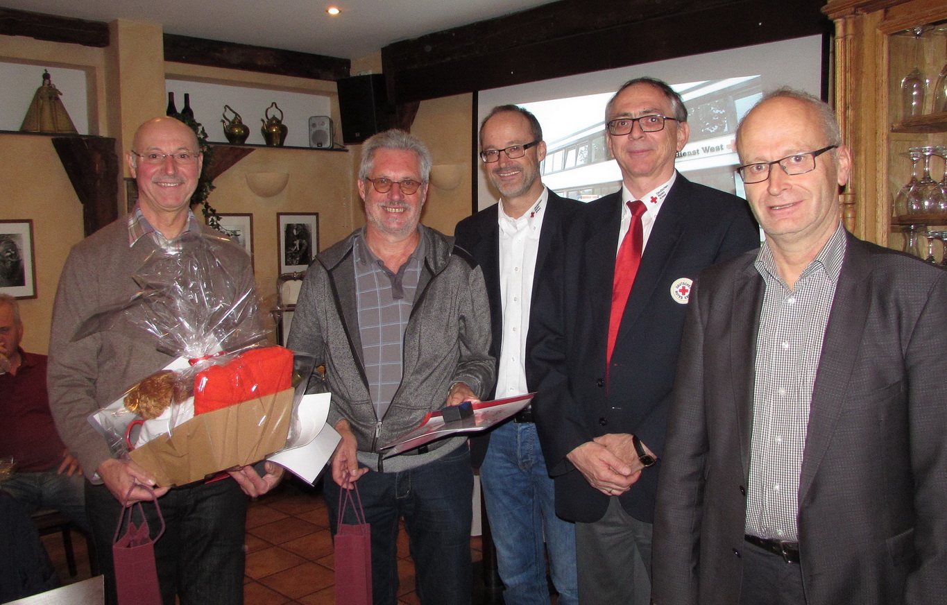 Dabei handelte es sich um Werner Zeyen, Bernhard Zervos, Siegfried Rieger, Michael Steffens und Walter Berghaus. In Abwesenheit wurde Horst Griesenbrock für hundert Blutspenden mit Urkunde, Ehrennadel und Präsent geehrt.