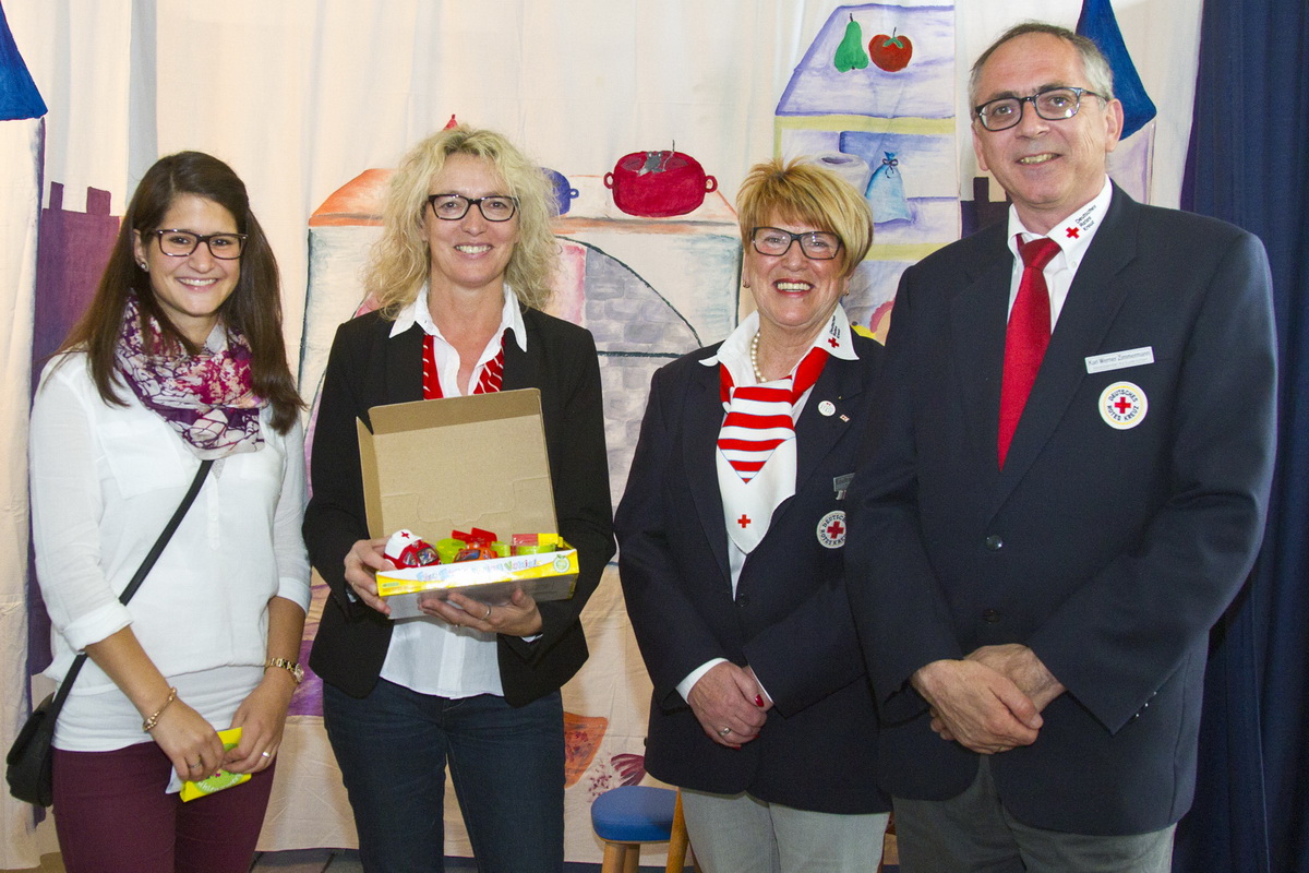 Kita-Leiterin Nadine Ramers bedankte sich vor allem bei Rita Witt, Vorsitzende der beiden Stiftungen der Kreissparkasse Euskirchen (KSK). Denn die KSK-Bürgerstiftung hatte der Einrichtung, die vor 40 Jahren in der alten Schule eingeweiht wurde, mit 1.500 Euro unter die Arme gegriffen. Dazu hatte Witt noch Holzpuzzel und Spielzeugautos mitgebracht. Darunter war passenderweise auch ein Krankenwagen mit Rotem Kreuz, was besondere Freude bei Edeltraud Engelen und Karl Werner Zimmermann vom Kreisvorstand der Euskirchener Rotkreuzler hervorrief. „So einen brauche ich auch“, meinte Engelen, nachdem sie das Gefährt mit Retraktionsmotor gleich ausprobiert hatte.