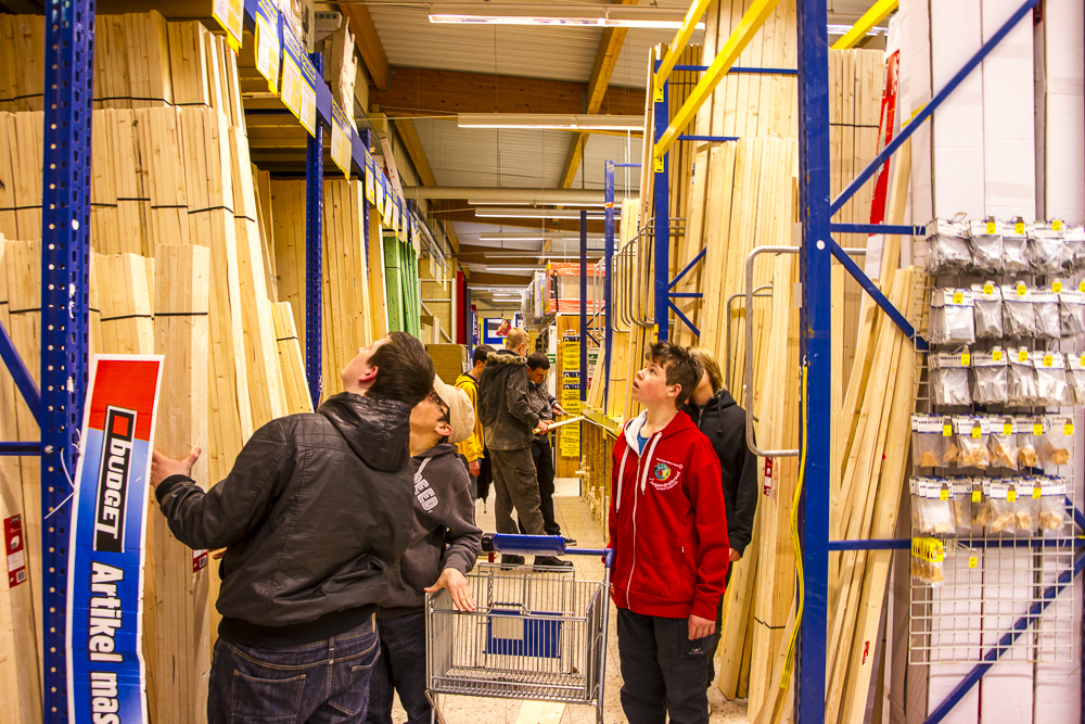 Am Freitag wurde zuerst das handwerkliche Geschick der Teilnehmer auf die Probe gestellt. Mit einem begrenzten Budget ging es in den Baumarkt nach Schleiden, wo das Material für einen selbst zu erstellenden Transportwagen für das Gepäck am nächsten Tag zu besorgen war.