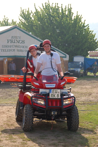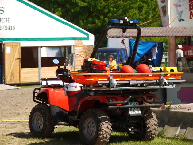 Neu in diesem Jahr dabei: das ATV. Ein Quad-ähnliches Gefährt, ausgebaut zum Geländerettungsmittel. Hiermit wurde der Notarzt den einzelnen RTWs und Rotkreuz-Sanitätsposten zugeführt bzw. mehrmals verletzte Fahrer aus schwer zugänglichen Streckenbereichen geholt.