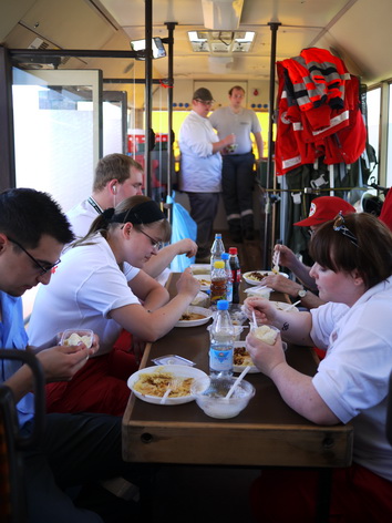 Nachdem alle Rennen beendet waren, wurden Material und Fahrzeuge vom Staub befreit und gereinigt. Anschließend grillten die Rotkreuzler noch gemeinsam und waren sich einig:"Nächstes Jahr sind wir wieder dabei!"
