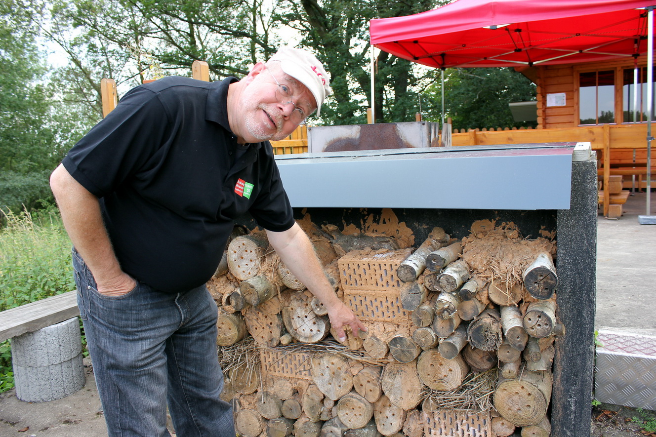 Die Idee zu beiden Einrichtungen hatte Rotkreuz-Geschäftsführer Rolf Zimmermann. „Schon direkt nach der zivilen Öffnung Vogelsangs im Jahr 2009 wollten wir diese Baracke hier kaufen“, berichtet er und meint damit das heutige Bildungshaus „Transit 59“ mit rund 42.000 Quadratmetern Natur drum herum. 2011 dann konnte er seinen Plan umsetzen. Das Rote Kreuz im Kreis Euskirchen erwarb die „Baracke“ nebst Gelände für 52.000 Euro und investierte weitere 70.000 Euro. Entstanden ist ein freundliches Bildungshaus mit benachbarter Grillhütte. Ganz neu: Ein Team um Zimmermanns Frau, die Biologin Dr. Barbara Roitzheim, hat einen Naturlehrpfad mit 45 Stationen entwickelt, der sich jetzt auf dem Gelände rund um das Haus und sogar im Haus schlängelt.