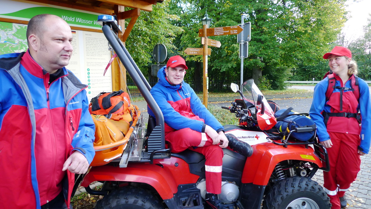 Vergangenen Samstag veranstaltete der WDR eine Zuschauerwanderung im Nationalpark Eifel. Start und Ziel bildete das Nationalpark Tor in Heimbach; die teilweise recht anspruchsvolle Strecke verlief über die Abtei Mariawald. Damit die Zuschauer die wünderschöne Natur in Ruhe genießen konnten, sorgte ein Teil des Rotkreuz- Bergwacht- Teams für die Sicherheit und war für eventuelle Notfälle gerüstet.