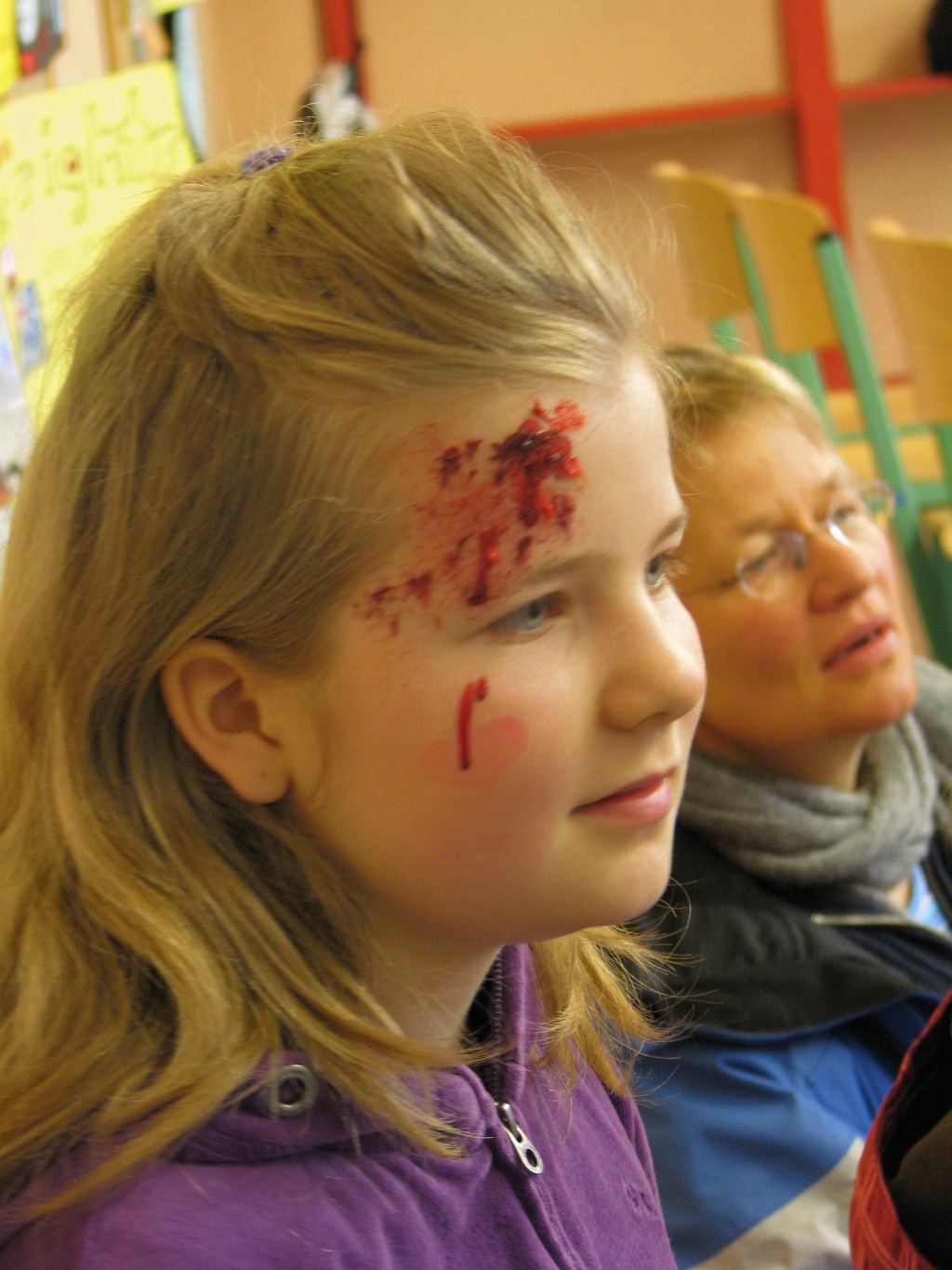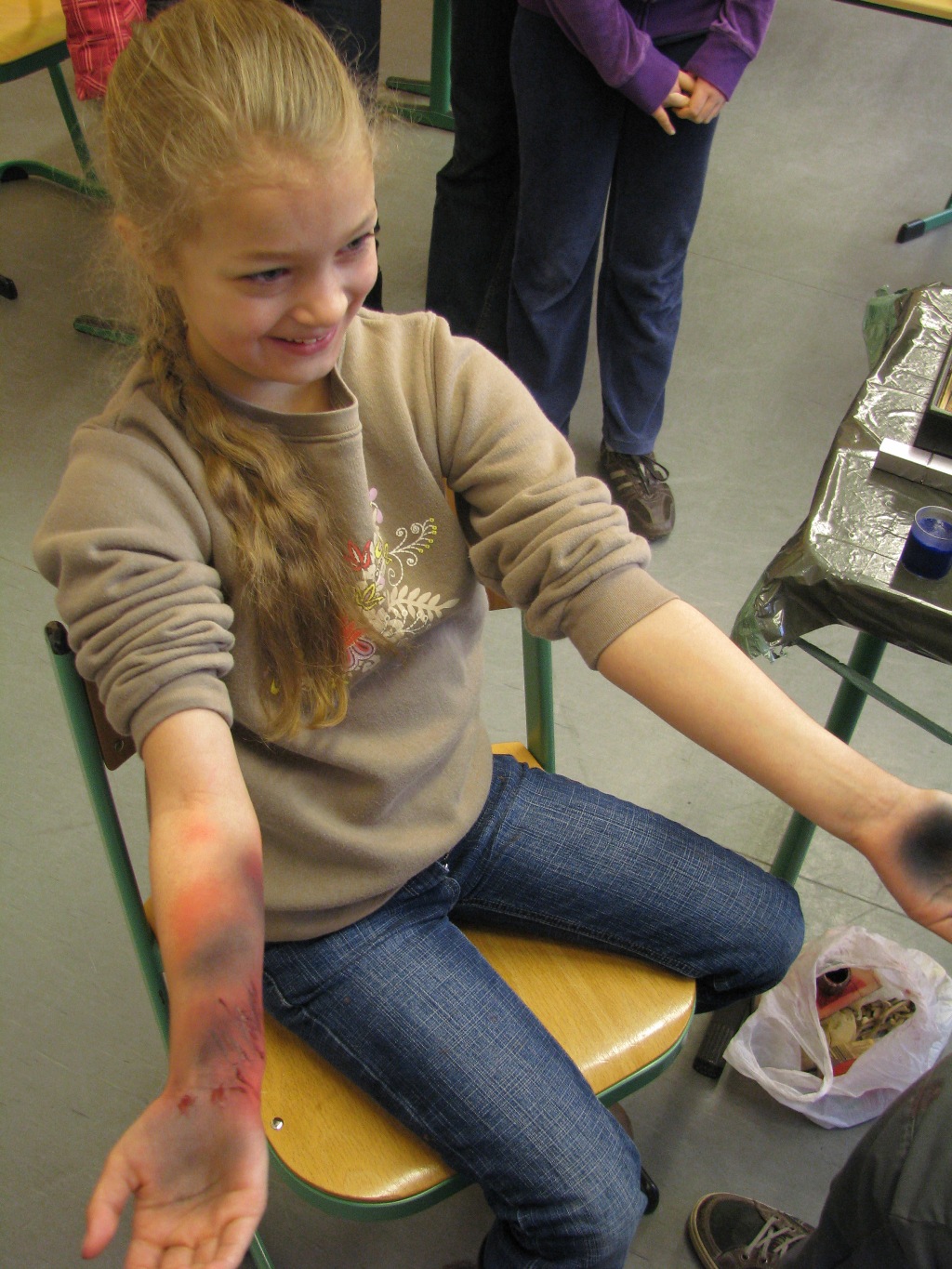 Glücklicherweise waren alle "Wunden" abwaschbar. Die Jungsanitäter erbrachten souveräne Leistungen. Die Schüler erledigten ihre Aufgaben zufriedenstellend. Schnell reagierten sie auf die verschiedenen Anforderungen der Übungen. Sie verbanden, spülten Augen aus oder sprachen beruhigend zu.