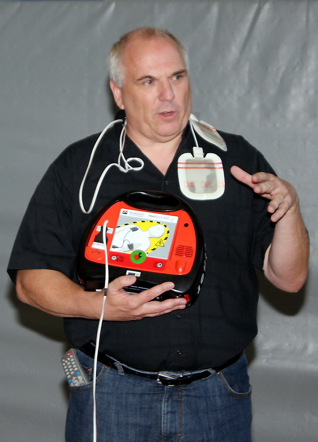 Bei der Defi-Schulung konnten die Teilnehmer nun den Einsatz des Gerätes kennenlernen – und die Hilfemaßnahmen für den Notfall selbst ausprobieren. Angeleitet von Andreas Hollmann durfte sich jeder in der Herz-Lungen-Wiederbelebung an den Trainingspuppen versuchen. Michael Mahlberg: „Niemand muss Angst haben, einen Defibrillator einzusetzen. Alle Schritte sind selbsterklärend, ein Missbrauch ist ausgeschlossen.“