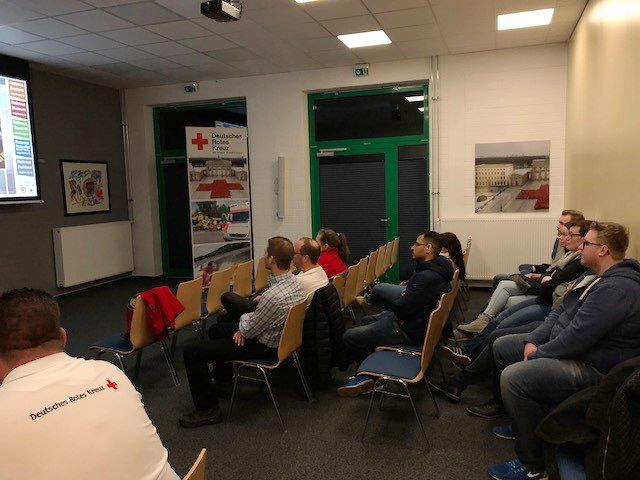 Der Gemeinschaftsabend der Zülpicher Rotkreuzler stand diesmal unter dem Thema "Rotkreuz - Spirit". Dazu machten die Helfer sich auf den Weg zu Rolf Zimmermann in die Rotkreuz Akademie vogelsang ip. Mit einem Impulsvortrag der besonderen Art machte er nochmal auf die weltweite und wichtige Arbeit der "Internationalen Rotkreuz und Rothalbmondbewegung" aufmerksam. Uns allen wurde nochmal klar, wie wichtig unsere Arbeit für ALLE Menschen ist. Egal welche Hautfarbe, welche Glaubensrichtung oder welche Herkunft! Wir arbeiten im Zeichen der Menschlichkeit.
