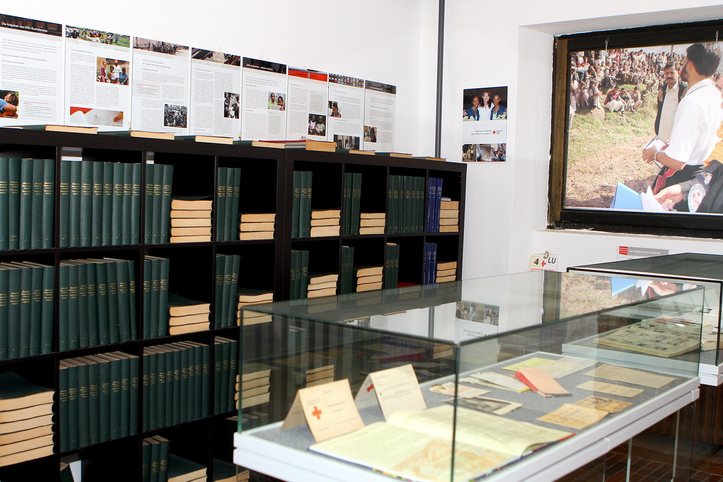 Nicht von ungefähr stehen fast am Ende des Rundgangs 2013 drei Räume mit Bildern des Aachener Künstlers Detlef Kellermann, in denen es um „Menschenmenge“, so der Titel, Menschenrechte und Menschenwürde geht. Zu dieser Ausstellung wurde ein gleichnamiger Bildband herausgegeben, der wie viele andere Rotkreuz-Accessoires im Museumsshop erhältlich ist.