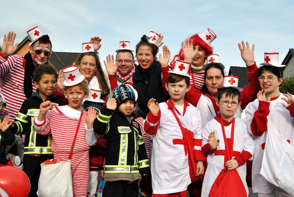 Weilerswist – Gleich in zweifacher Mission war das Rote Kreuz beim Karnevalszug in Weilerwist unterwegs. Zum einen sorgten die Einsatzkräfte des Weilerswister Ortsvereins in gewohnter Manier für die Sicherheit und den reibungslosen Ablauf, zum anderen stellte das DRK die wohl größte Gruppe beim närrischen Treiben, denn zum ersten Mal waren fast alle der insgesamt neun DRK-Kindergärten im Karnevalszug dabei und gleich durch mehrere Generationen vertreten.