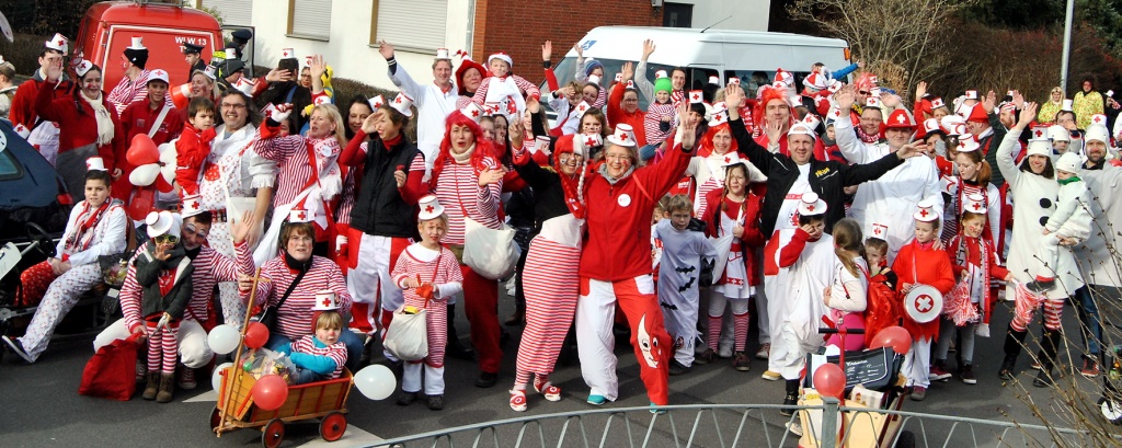 Dank der großzügigen Unterstützung seitens zahlreicher ortsansässiger Firmen konnten die großen und kleinen Rotkreuzler aus dem Vollen schöpfen und jede Menge Kamelle und anderes Wurfmaterial unters Volk bringen.