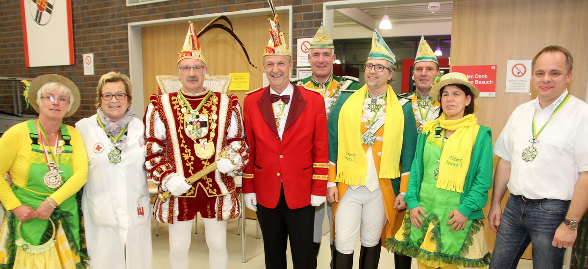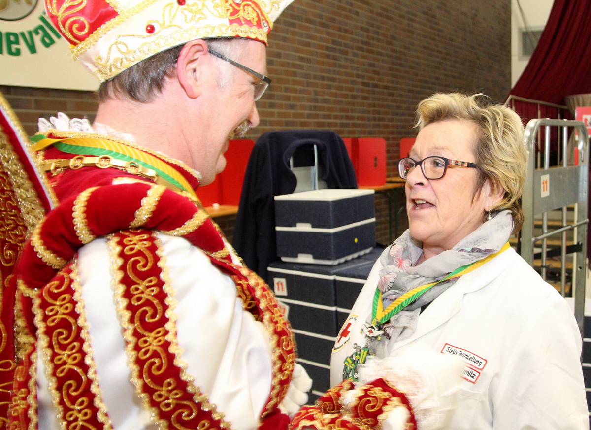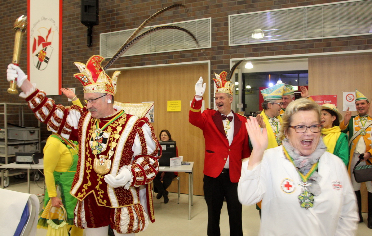 Karnevalsprinz Franz I. steckte die Blutspender im Forum mit seiner guten Laune an – Orden für Gemeinschaftsleiter Thomas Heinen und Resi Nagelschmitz – Insgesamt 302 Blutspender