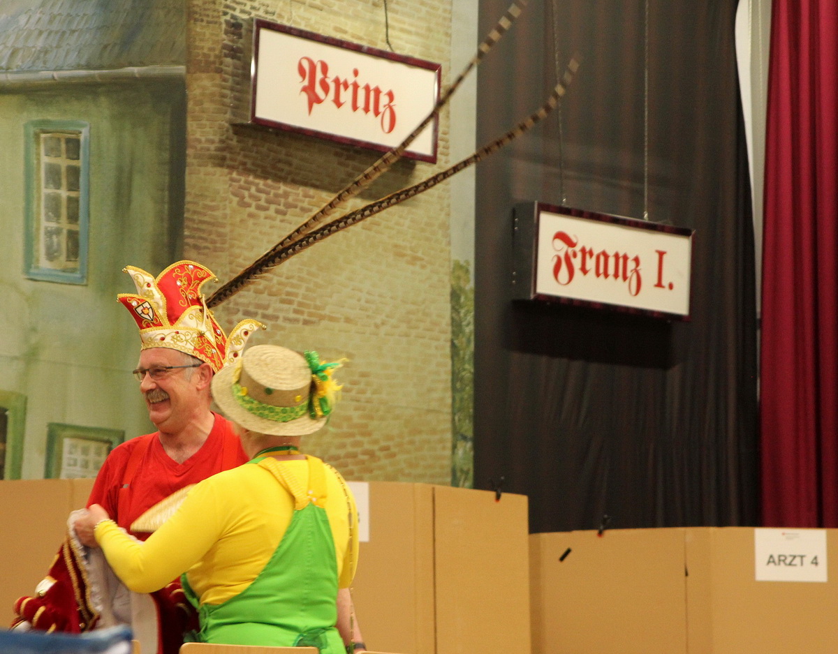 „Et Bloot lööf“ hatte Prinz Franz I. im Vorfeld angekündigt – und sollte Recht behalten. Die 530 Gramm Blut waren im Nu gespendet. Das Zülpicher Volk hatte sogar die Möglichkeit, die Tollität ohne Ornat zu sehen, das er schon zur Voruntersuchung durch den DRK-Arzt ablegen musste. Wegen des hohen Andrangs nahm er mit Gefolge zunächst geduldig im „Wartezimmer“ auf der Bühne des Forums Platz – also dort, wo er normalerweise bei den Karnevalssitzungen unter großem Beifall einmarschiert. Anschließend ging’s zum Blutdruckmessen, außerdem gab es den ersten Piekser schon bei der Voruntersuchung.
